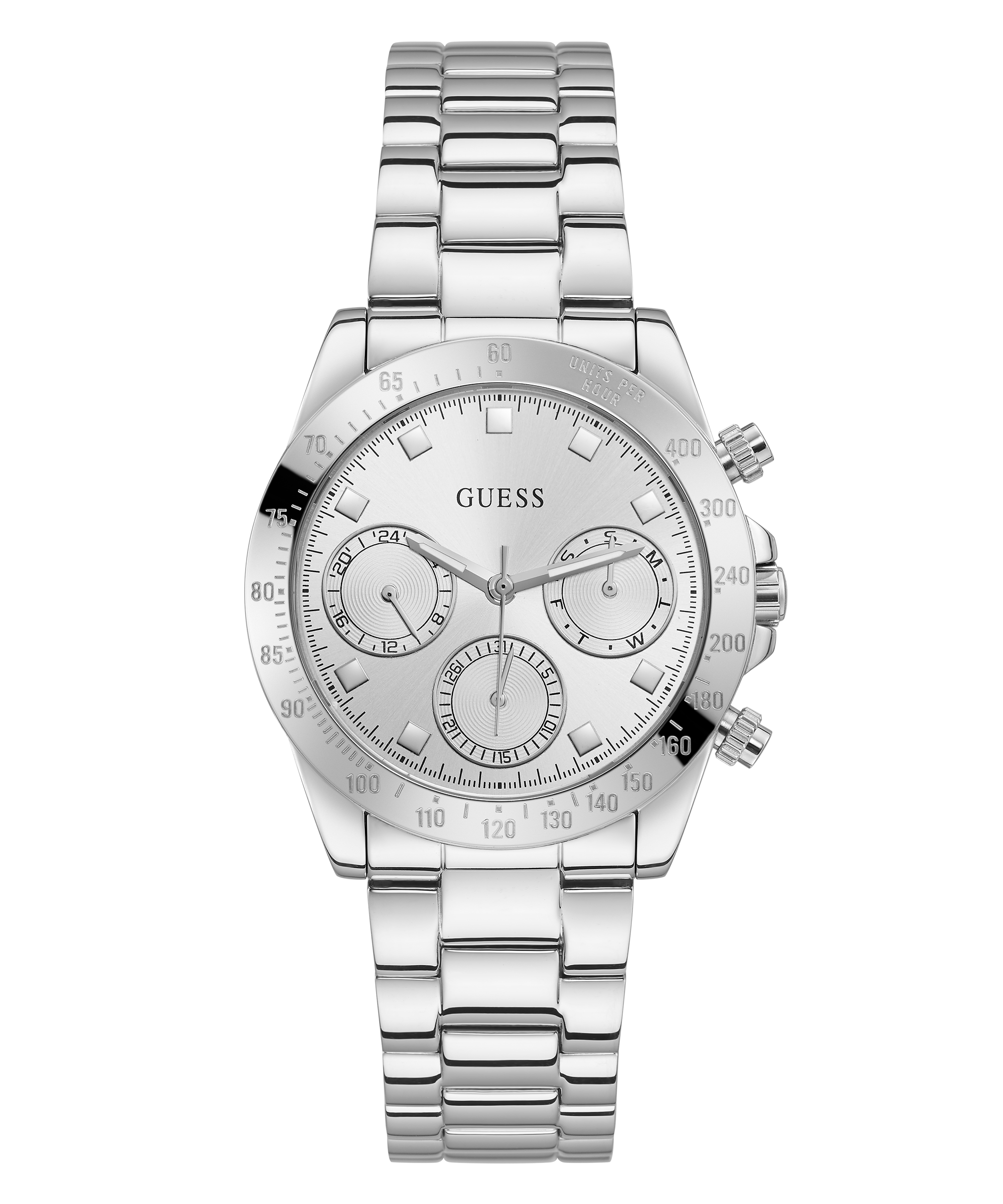 From elegant gold-tone designs to sporty chronographs, GUESS watches offer a perfect blend of fashion-forward aesthetics and reliable performance. Crafted with attention to detail, they feature sparkling accents, sleek materials, and distinctive logos, making every watch a statement of individuality and charm.