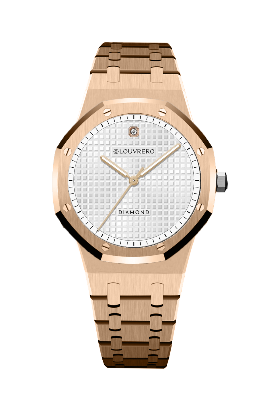 Command attention , a bold fusion of modern precision and timeless elegance. Designed for the women who values craftsmanship and sophistication, this luxury timepiece features a stainless steel case and bracelet with a sleek brushed finish and an iconic octagonal bezel—delivering a refined yet powerful silhouette. The rich green textured dial is the centerpiece, enhanced by luminous silver-tone hands and markers for effortless readability in any light. A genuine diamond set at the 12 o’clock position adds a refined touch, reflecting subtle luxury and exclusivity. Protected by scratch-resistant sapphire crystal, the dial maintains its brilliance over time. Inside, a precision quartz movement ensures dependable performance, while water resistance offers confidence and versatility for daily wear or formal occasions. This is more than just a men’s silver watch—it’s a symbol of personal style, ambition, and attention to detail. Whether you're dressing for the office, a formal event, or elevating your everyday look, the Eclipse Diamond Watch delivers elegance with purpose. Make your mark with a piece that blends tradition with innovation—crafted for those who lead with distinction.